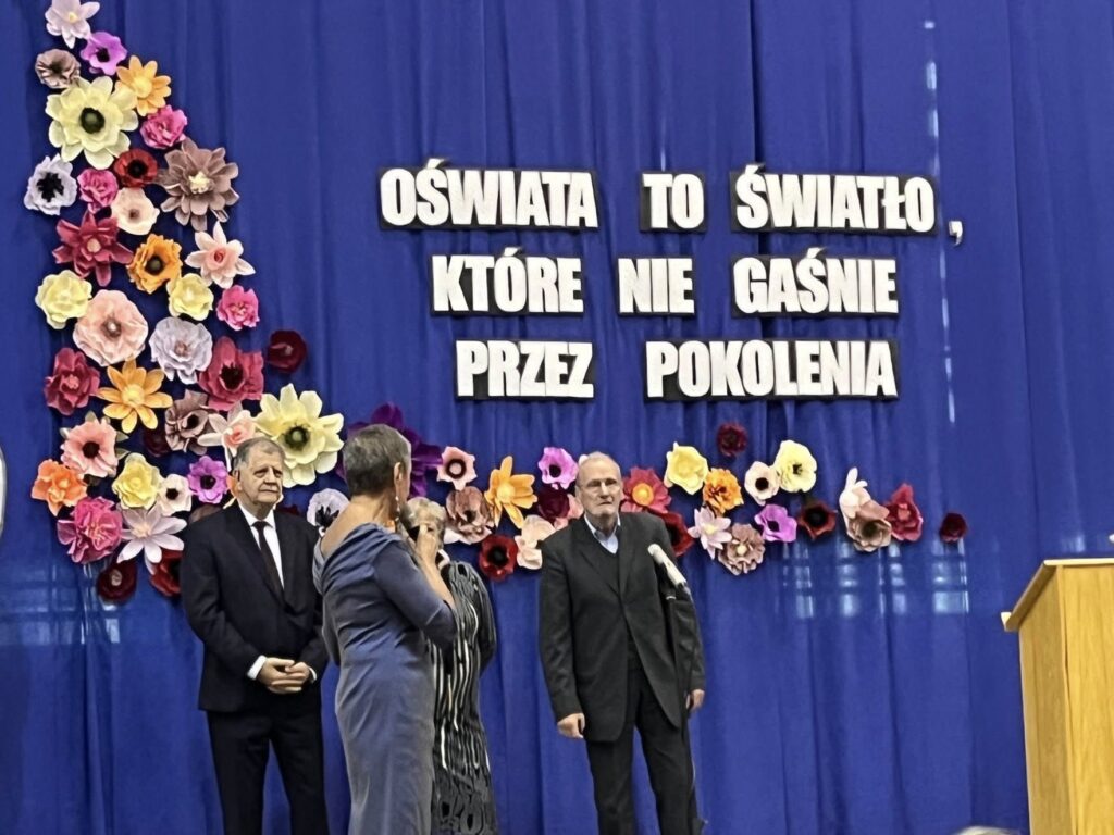 Podczas wydarzenia wręczono medale osobom szczególnie zasłużonym, w tym m.in. pani Beacie i panu Edwardowi Zdrojkom – założycielom i pierwszym dyrektorom naszej szkoły oraz panu Andrzejowi Obałkowi, wieloletniemu dyrektorowi m.in. naszej szkoły, któremu zawdzięczamy rozbudowę budynku przy ul. Zygmunta Augusta.
