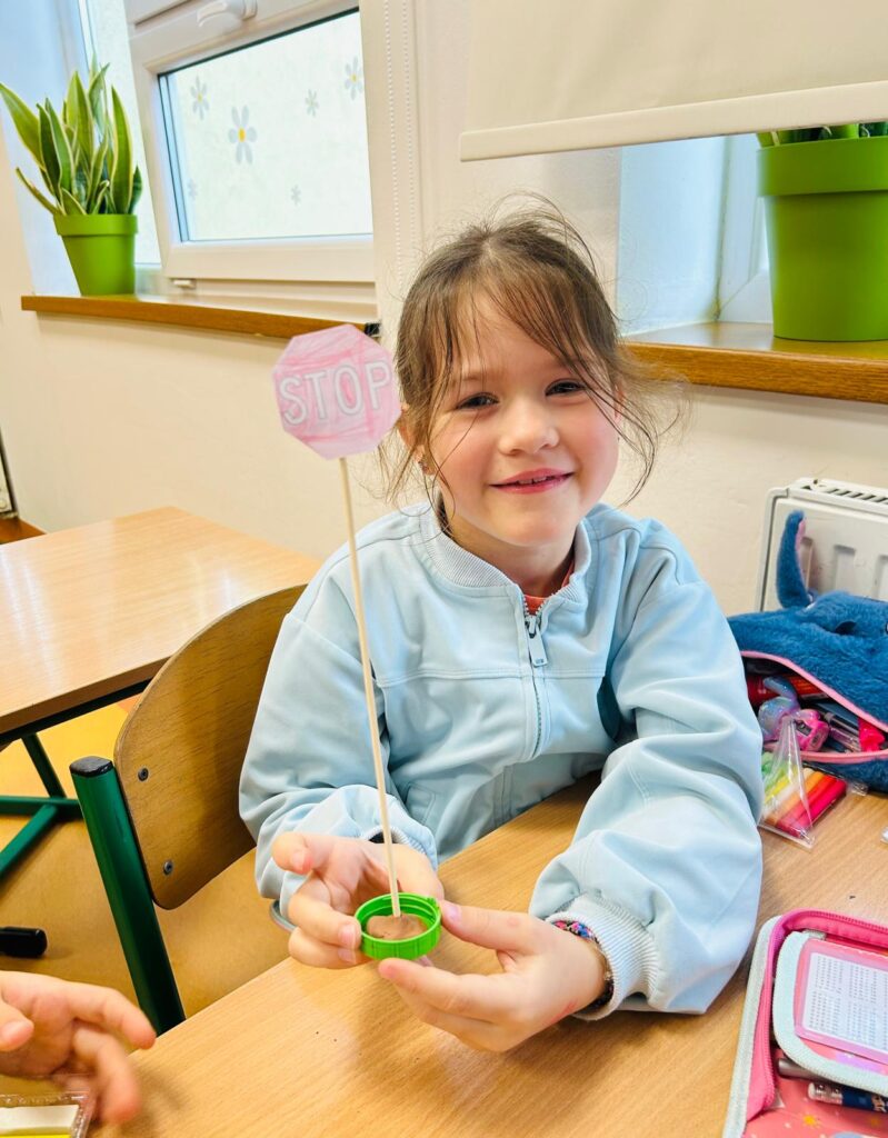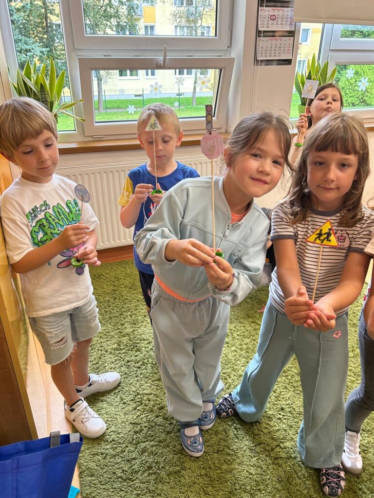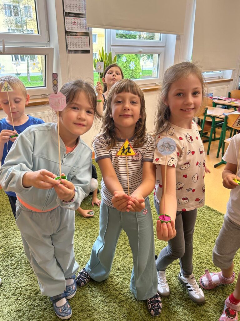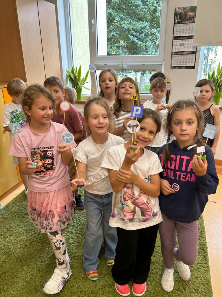 Na lekcji techniki dzieci samodzielnie wykonały także znaki drogowe, dzięki czemu jeszcze lepiej utrwaliły ich znaczenie. To była ciekawa i bardzo potrzebna lekcja bezpieczeństwa!