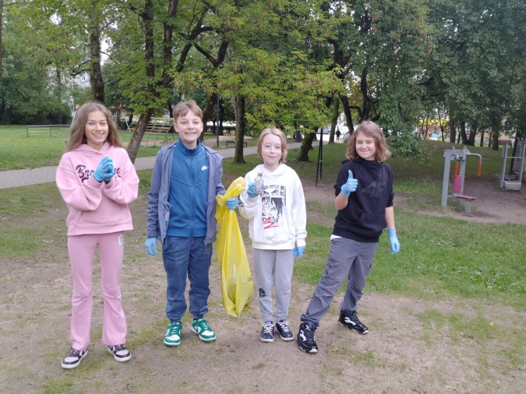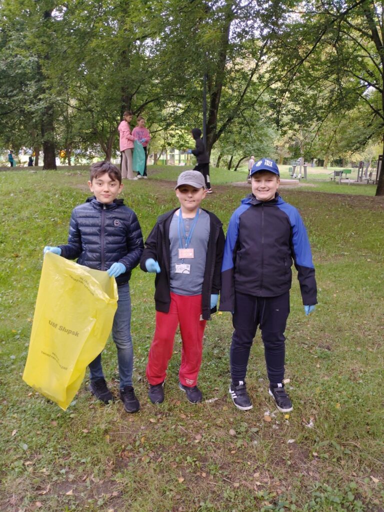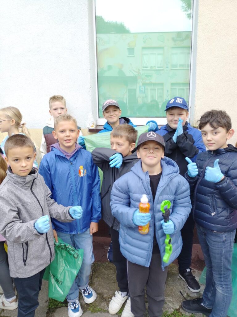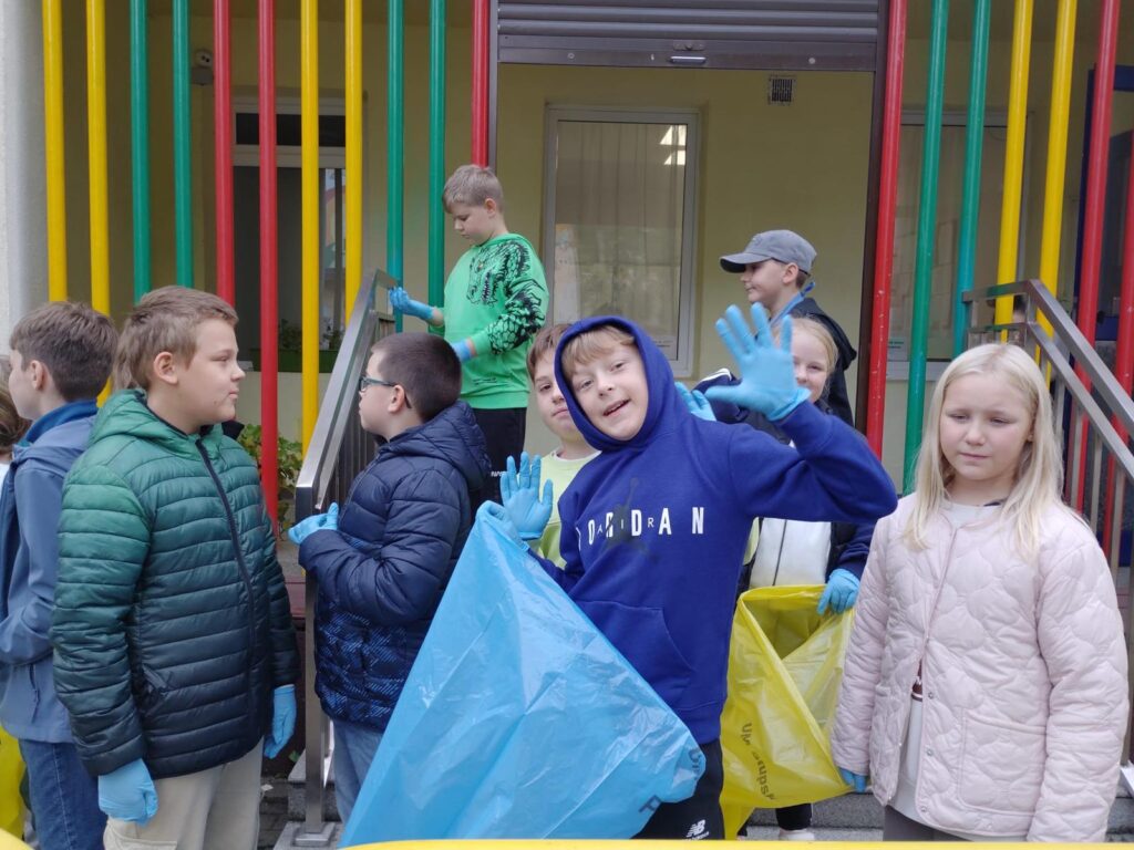 Uczniowie klas 4, zgodnie ze swoim motywem przyrodniczym, wzięli dzisiaj udział w Ogólnopolskiej Akcji „Sprzątanie Świata”.
