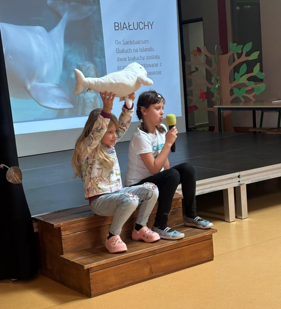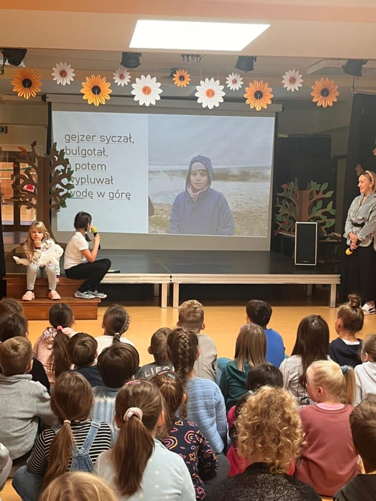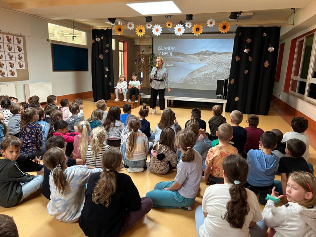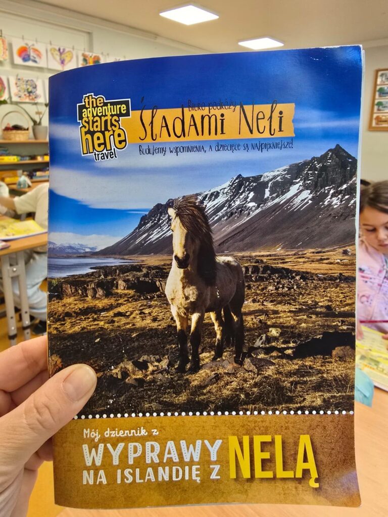 Jedną z ciekawych inicjatyw zaproponowanych przez Gaję było zaproszenie do szkoły Neli Małej-Reporterki – znanej podróżniczki i autorki książek dla dzieci. Choć w tym czasie Nela realizowała inne projekty i nie mogła odwiedzić naszej szkoły, Gaja dzięki wsparciu swojej Mamy spotkała się z Nelą podczas wakacji i wspólnie zwiedzała niezwykłe miejsca podróżując po Islandii. Pamiątką, którą przywiozła Gaja z wakacji dla uczniów STO jest książka Neli z dedykacją specjalnie dla naszej społeczności szkolnej.