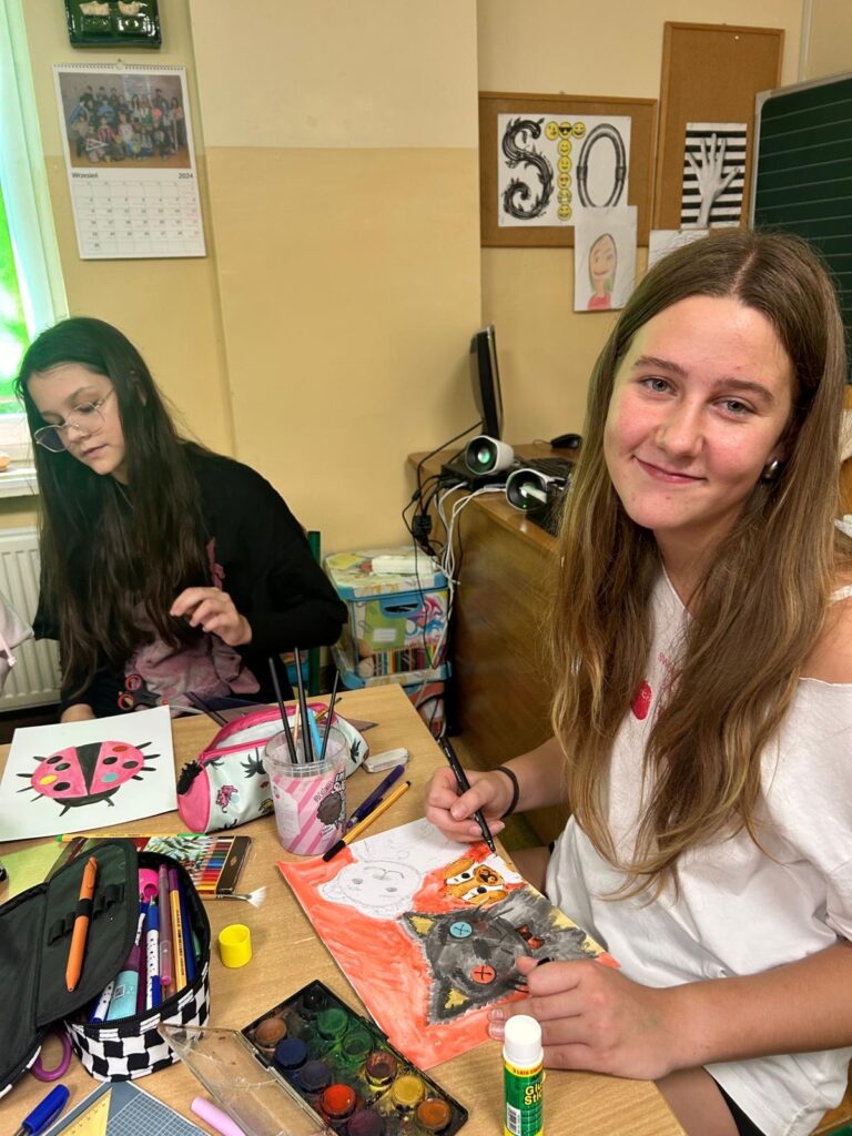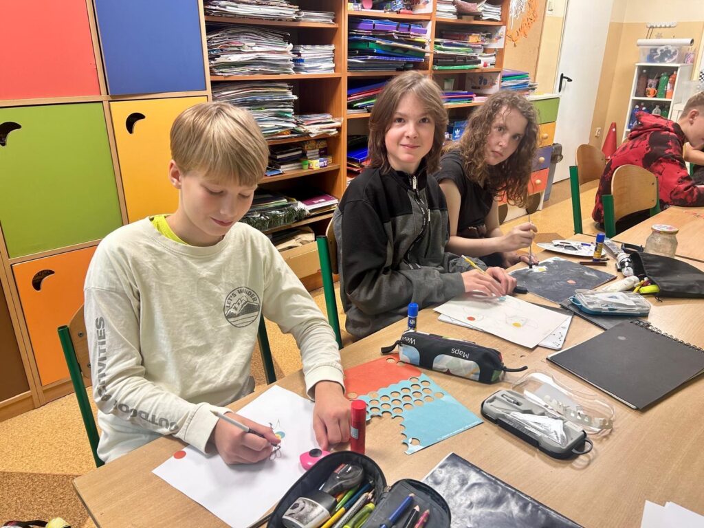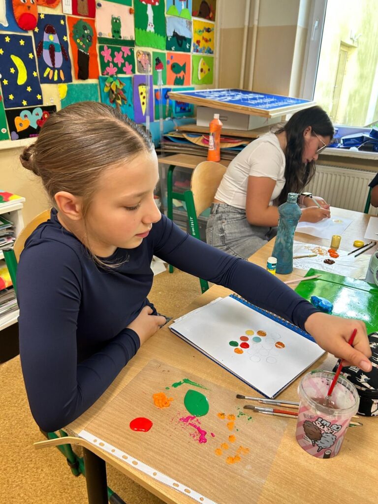 Na lekcjach plastyki uczniowie kl. VII oraz kl. VI wykazali się kreatywnością i zwykłe kropki przemienili w pomysłowe prace.