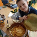 Klasa 3ab podczas zajęć języka angielskiego obchodziła Dzień Naleśnika. Rozmawialiśmy o tym jak dzieci w Wielkiej Brytanii obchodzą ten pyszny dzień. Nie zabrakło również w naszej klasie naleśników oraz słodkich i zdrowych owocowych dodatków.