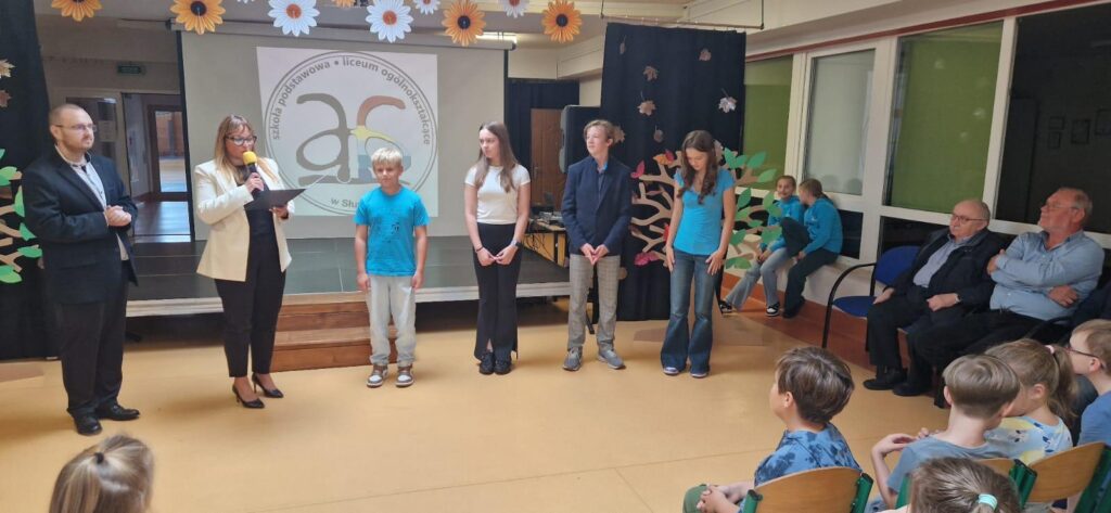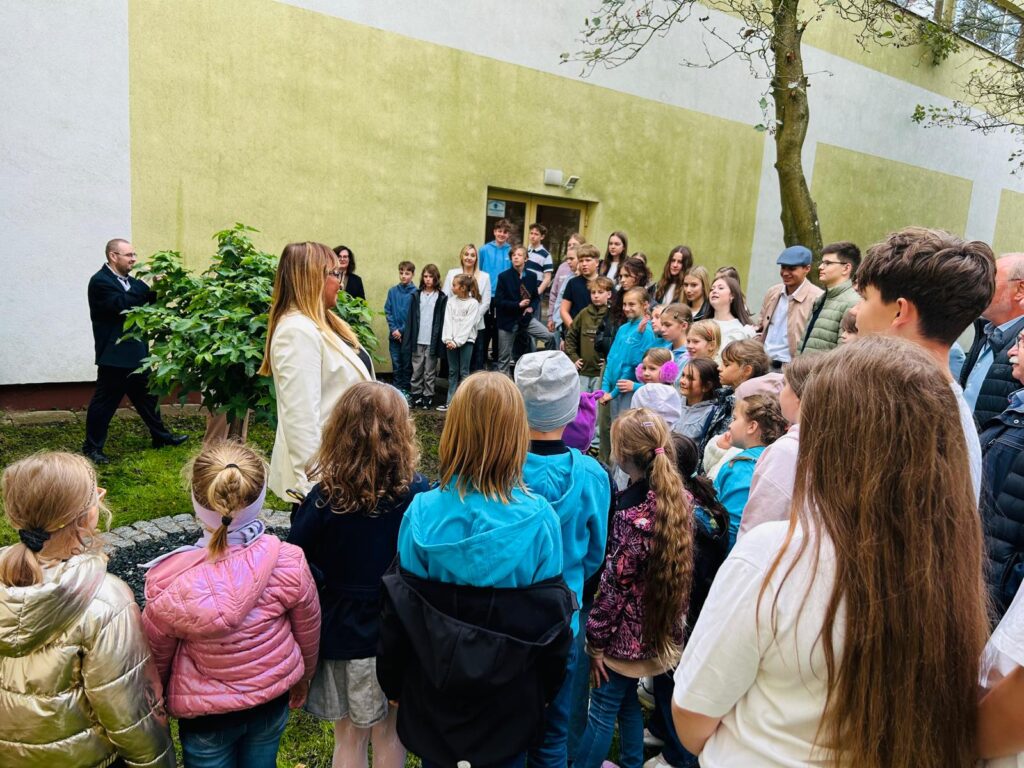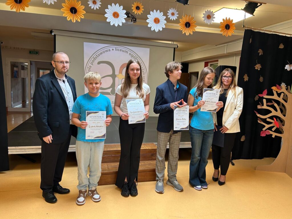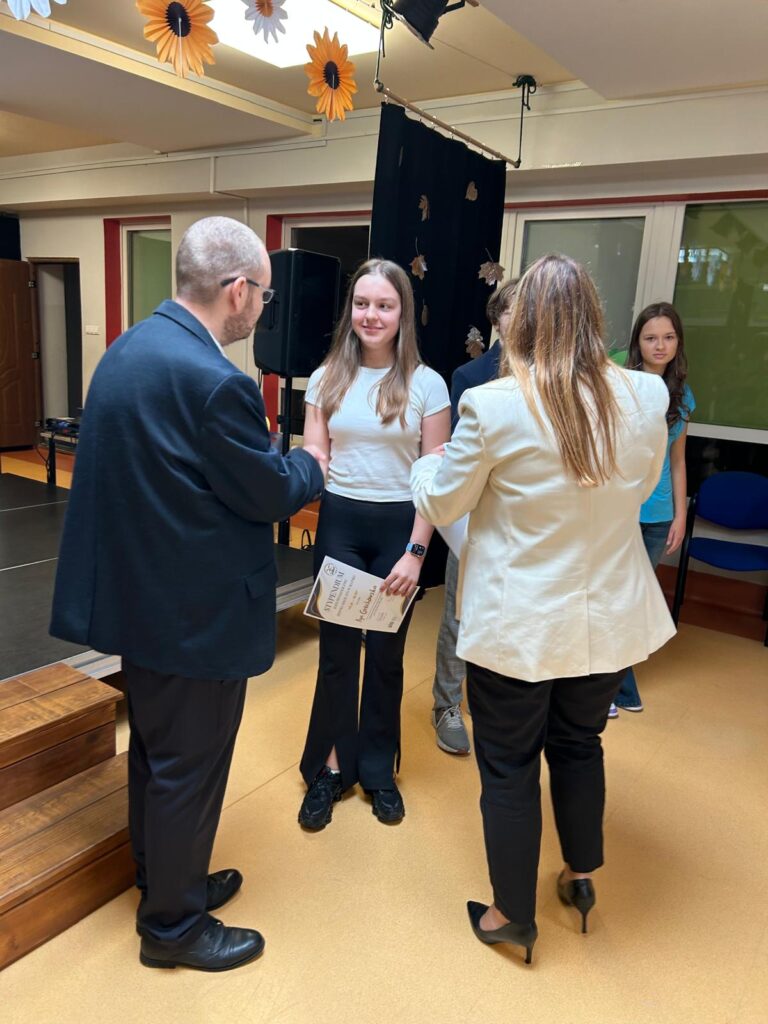 Najważniejszym momentem dnia było uroczyste odsłonięcie tabliczki przy drzewie, które na stałe wpisze się w historię i tradycję naszej szkoły. Podczas uroczystości dyrekcja wręczyła także stypendia Rady Pedagogicznej za aktywne działanie w szkole i poza nią, angażowanie się w życie szkolne, udział w akcjach charytatywnych i konkursach. Nagrodzeni zostali: Ludwik Mikolcz, Iga Grochowska, Antonia Jerzak i Damien Kałuc.