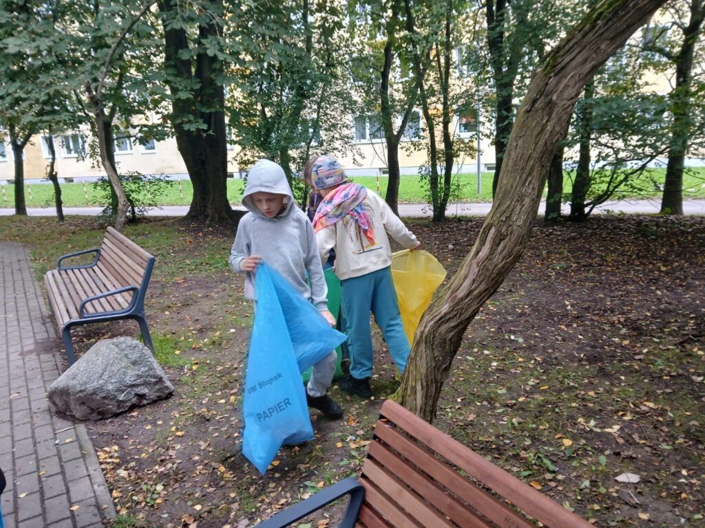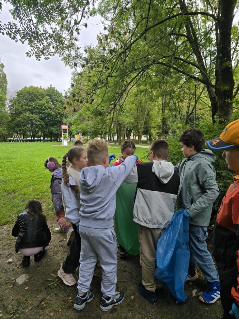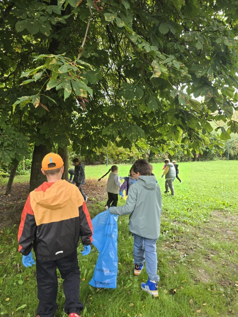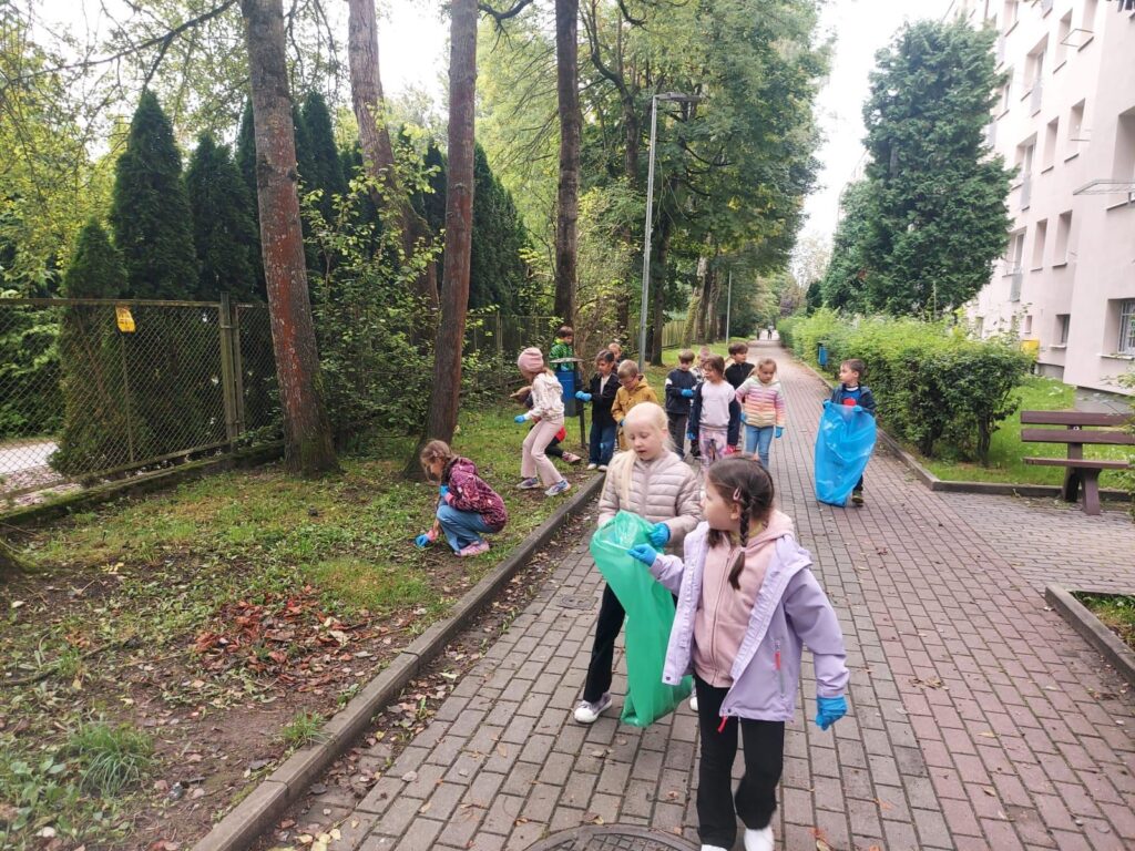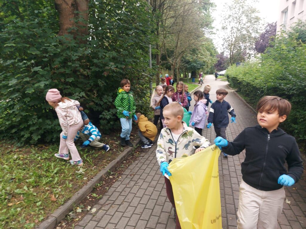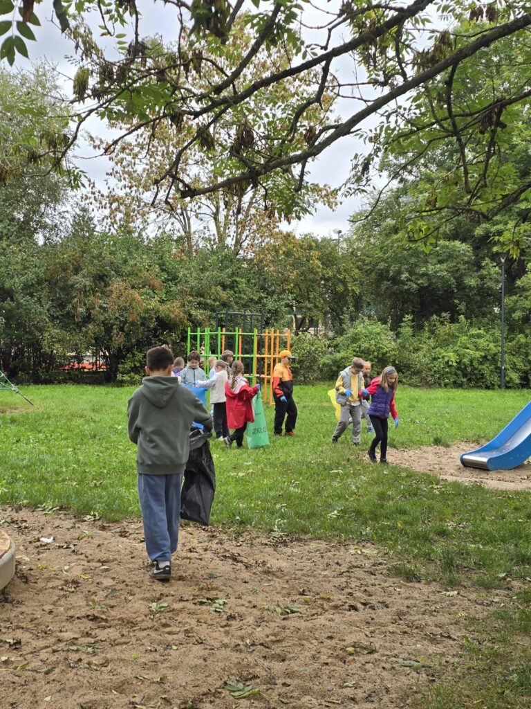 Razem wyruszyliśmy, aby posprzątać najbliższą okolicę szkoły – zebraliśmy śmieci, które szpeciły nasze otoczenie i daliśmy przykład, że wspólnie możemy wiele zmienić. Podczas zajęć rozmawialiśmy także o tym, jak ważna jest segregacja odpadów i jak każdy z nas, na co dzień, może przyczynić się do ochrony przyrody.