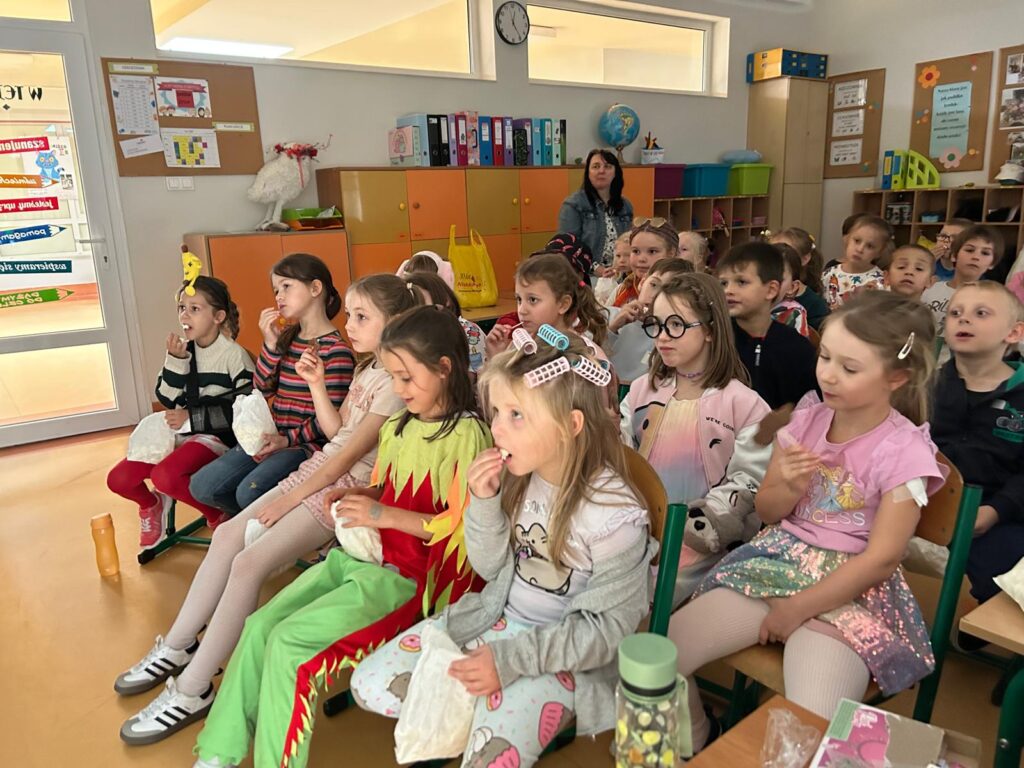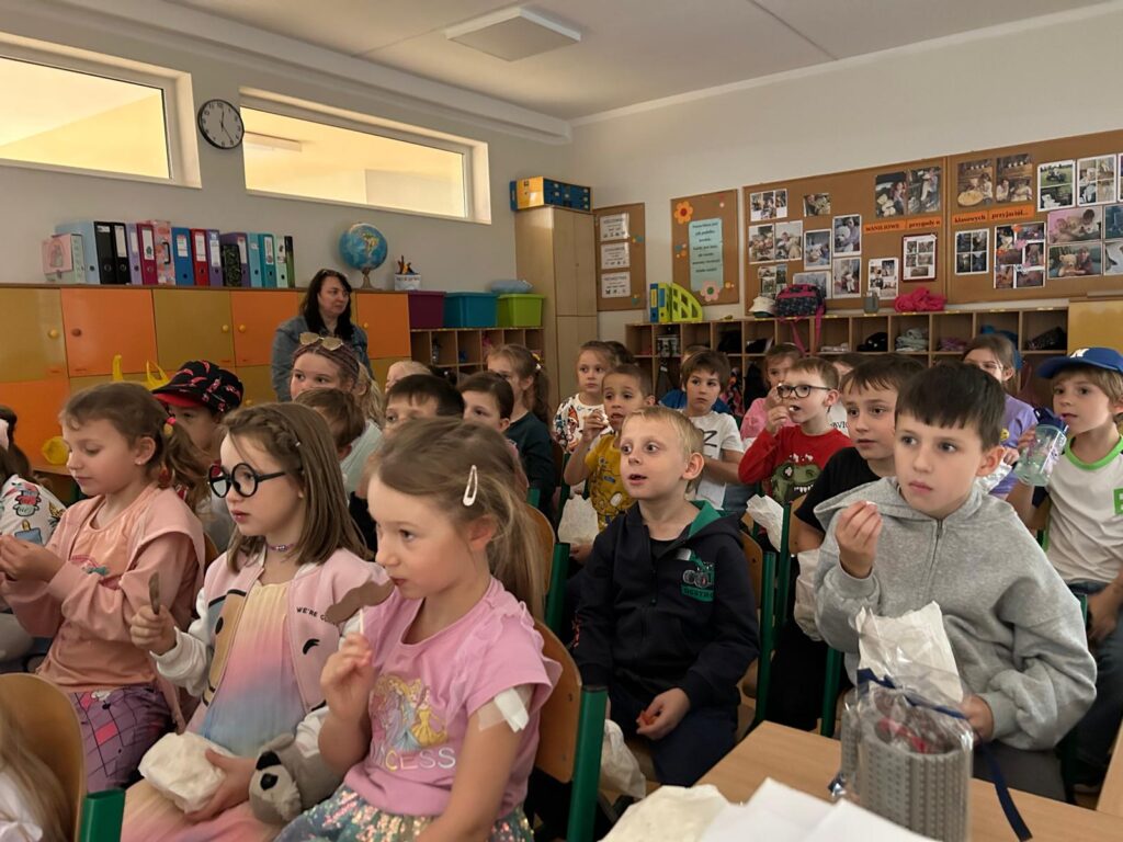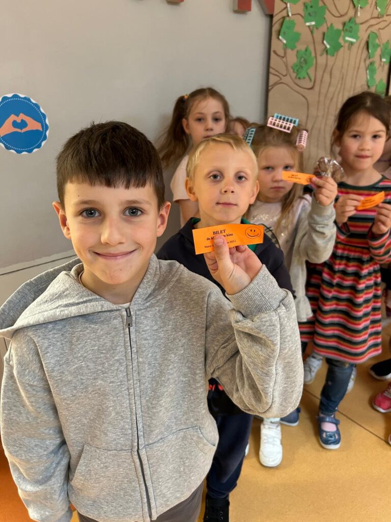 Dodatkową atrakcją dla pierwszoklasistów było wyjście do własnego klasowego kina – wspólne oglądanie filmu sprawiło im wiele radości.