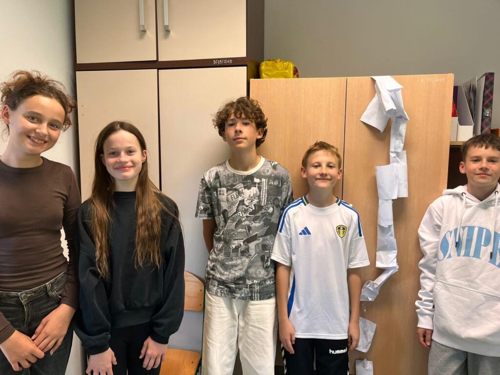 Na dzisiejszej godzinie wychowawczej w klasie 6a uczniowie zmierzyli się z nietypowym wyzwaniem – budowali wieżę z papieru!